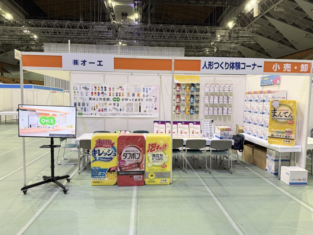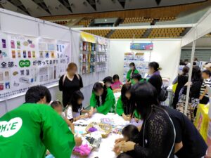 今年も弊社ブースでは、毎年ご好評いただいている「ボディタオルを使った人形作り」を実施し、多くの子どもたちにご参加いただきました。